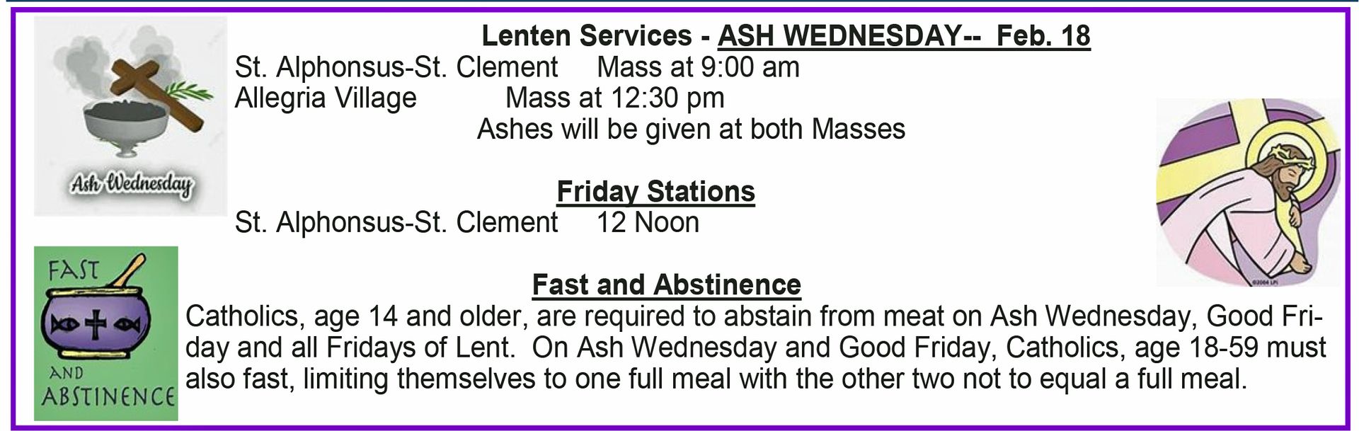 ASH WEDNESDAY-- Feb. 18